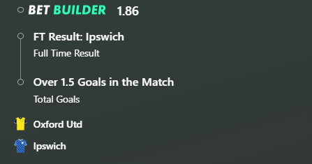Today's Pick: Ipswich Town to win + over 1.5 total goals @ 1.86 -- 2 units