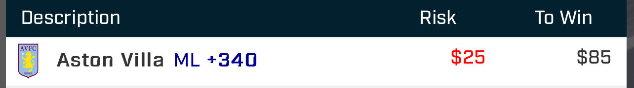 There’s been a weird back and forth between Villa and Man City. The pattern says Villa wins today and I like the value here because Aston Villa dropped a STINKER earlier in the week. Should be +220 maybe but we are getting juice here at +340. Stars are aligned. This is what I like.