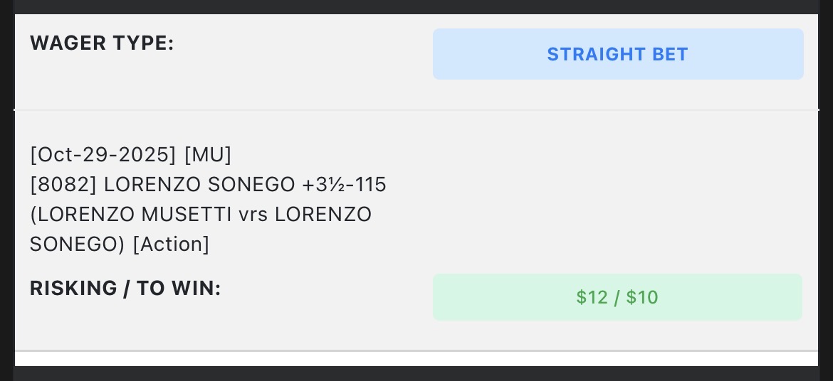Sonego looked great in his last match vs Korda. Musetti has had the busier schedule recently, and I think Sonego has fresher legs. I believe Musetti wins, but I like the odds for Sonego to cover here. I always like a matchup between compatriots as they usually know each other's play styles..Let’s see how this one fares